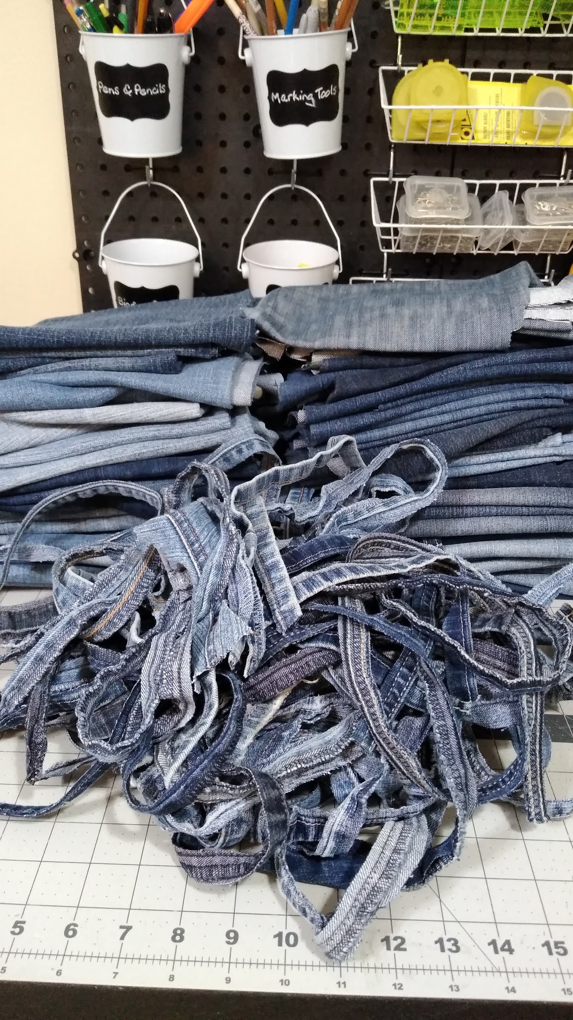 Last night when it was time to sit and relax, I worked on “de-boning” a bag of jeans I was given to make a quilt (hopefully two quilts) for the family of a friend that passed away last month.