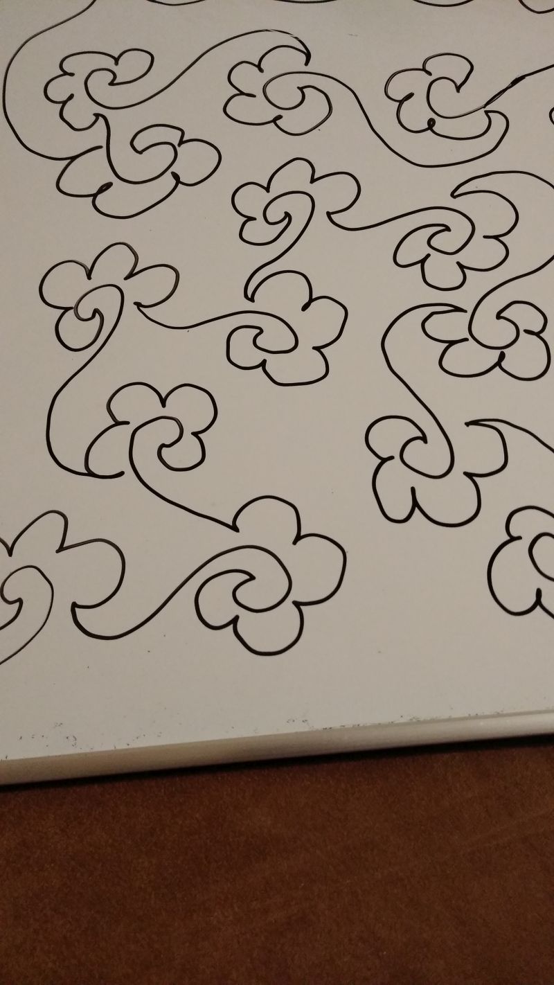I’ve been practicing some hand guided quilting… on a white board… too chicken to try it on a live quilt. But, I think I’m ready!