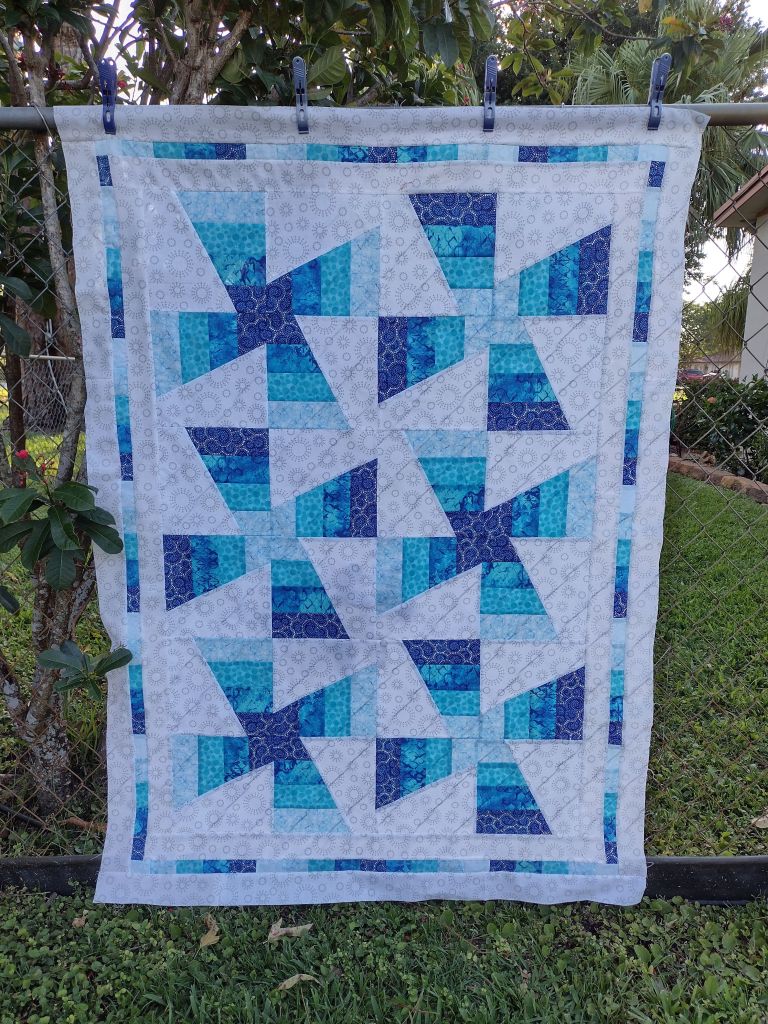This was Tuesday’s flimsy. I’ll take one of Wednesday’s as soon things dry up a bit. I’m happy to be getting these little kits pieced but dreading the quilting pile that’s growing higher by the day!