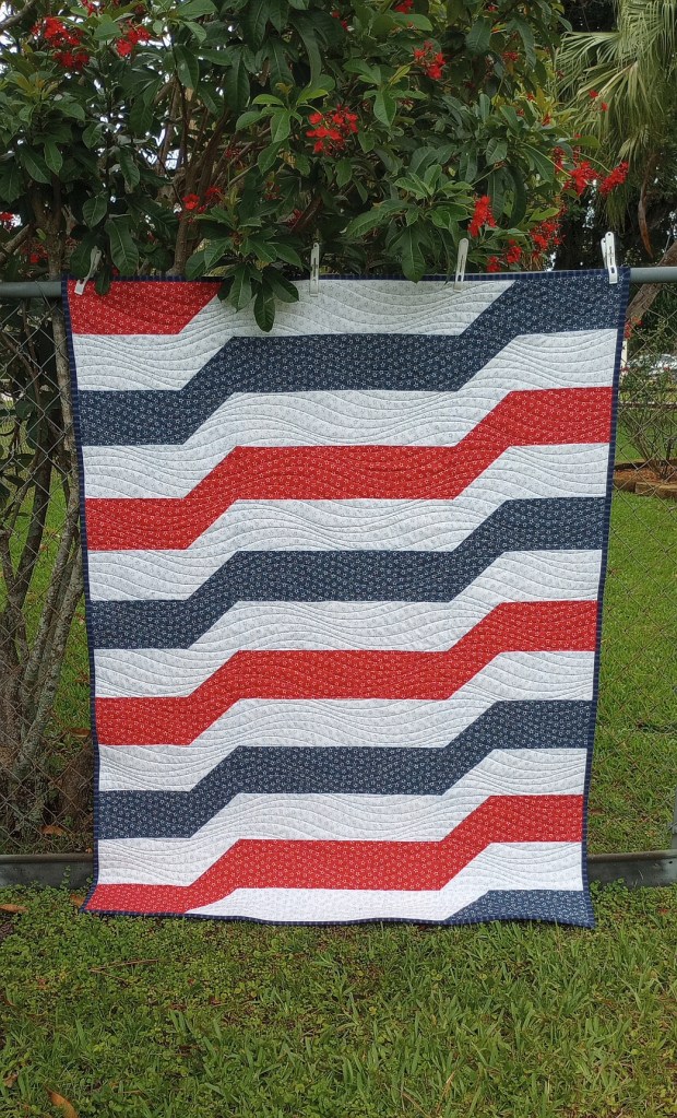 I took a break from my current string project to work on my “make your own round robin,” with the 4th round due Saturday. When the project began, we each picked 3 colors and a type of fabric print. Instead of passing the quilt top, our choices were sent to the next person, who picks one for their round. It ends in August, so there’s only one round left. After retiring, I promised to finish all my UFOs, mostly BOMs, mystery quilts, and sew-alongs. I struggle with putting projects aside, but I’m committed to finishing these. I’m anxious to quilt and donate them so I’m glad it will be over in August.