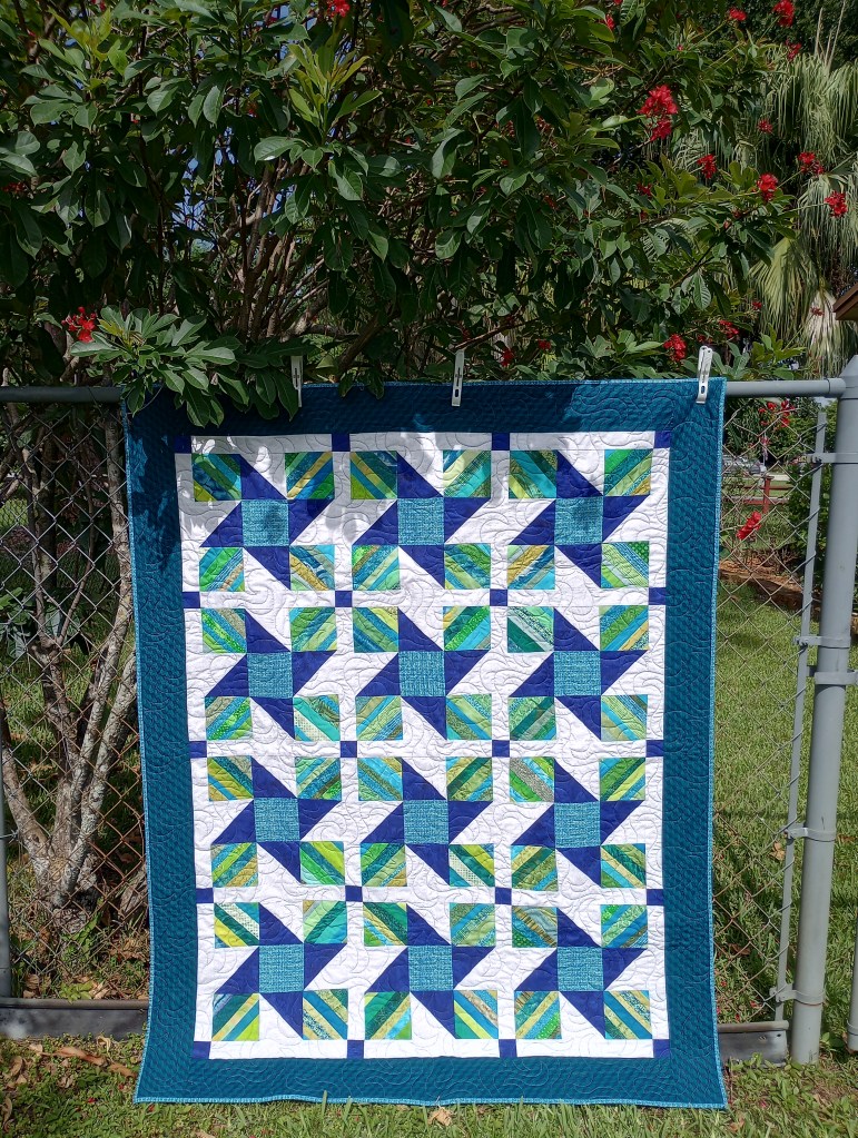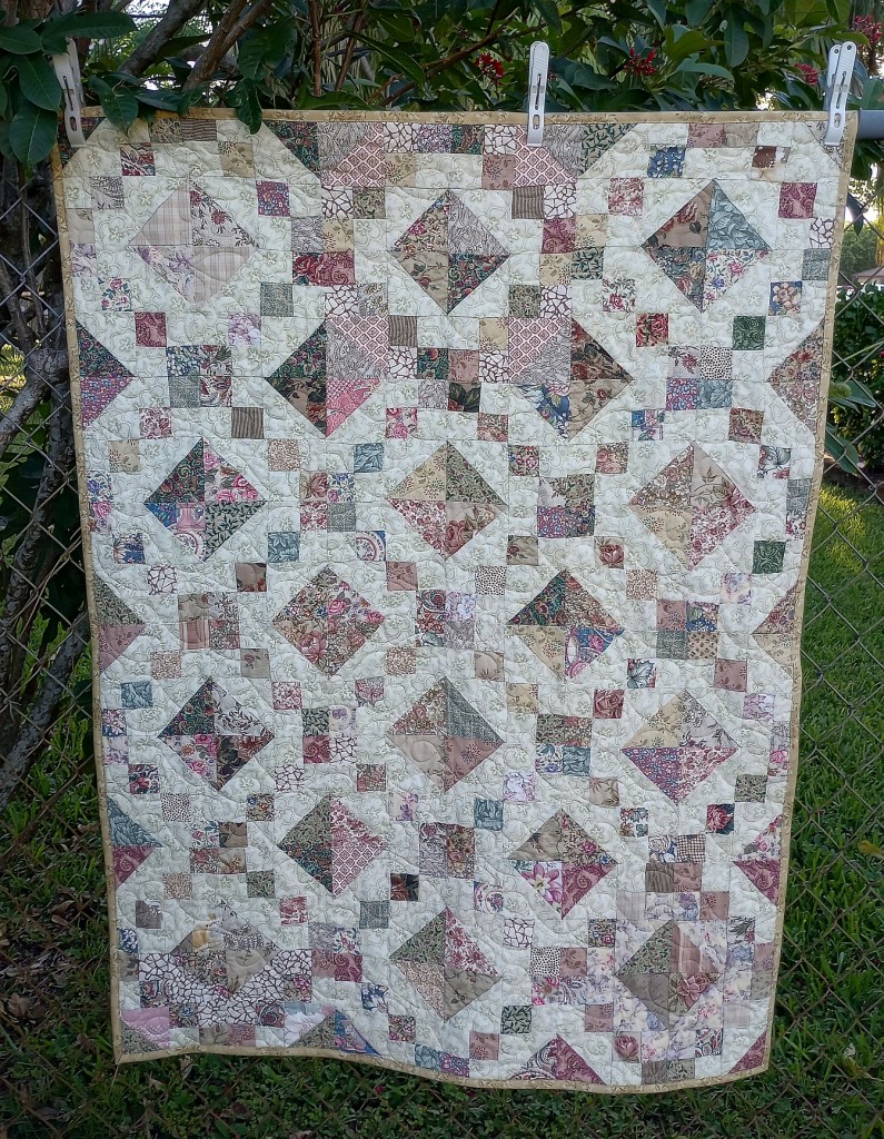 I quilted and bound this guild unfinished top that had been in storage for quite a while. I asked if I should adjust the size, either make more blocks or remove a few, so it would be easier to donate. The answer shook me to my core.