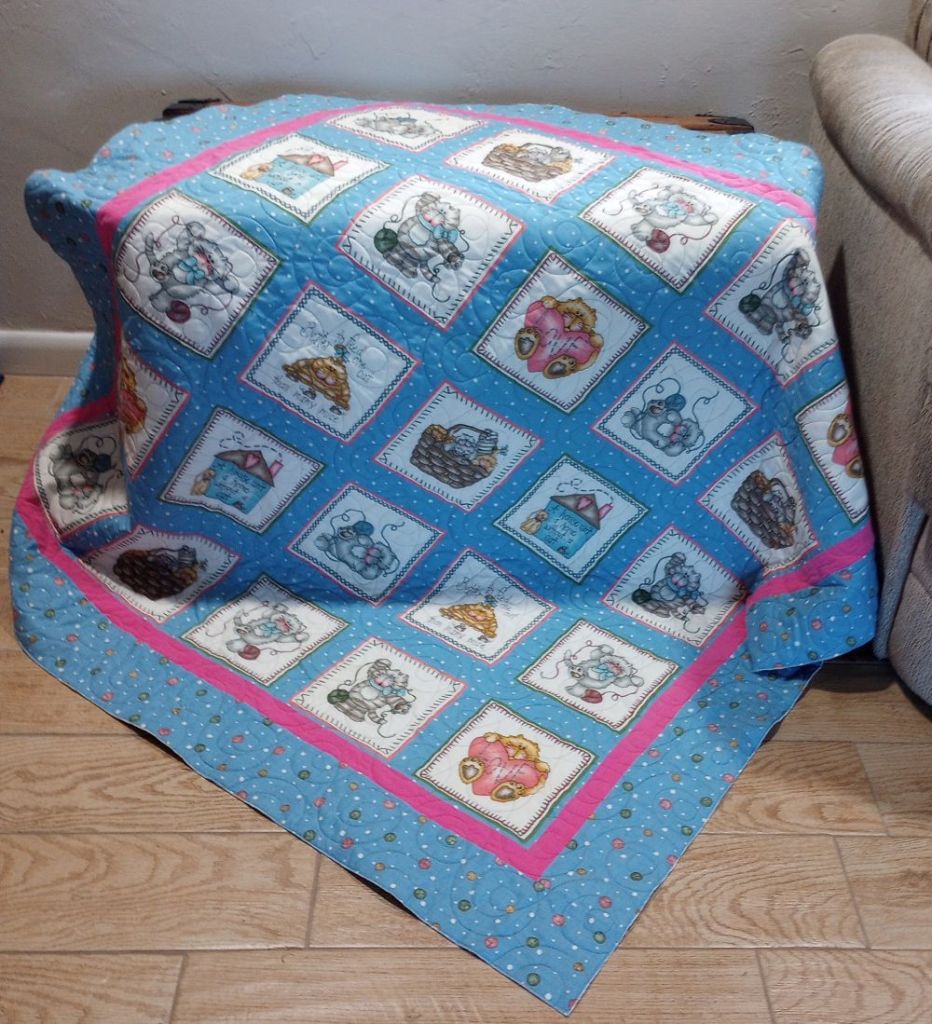 I have a few other commitments to work on in the next couple of months but, I’ll work on fitting in time for these too. Until they’re all finished, the bin of kits will live on my long arm table so they’re not “out of sight, out of mind”. 😉