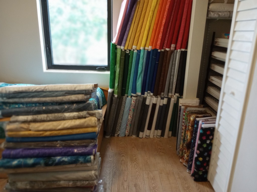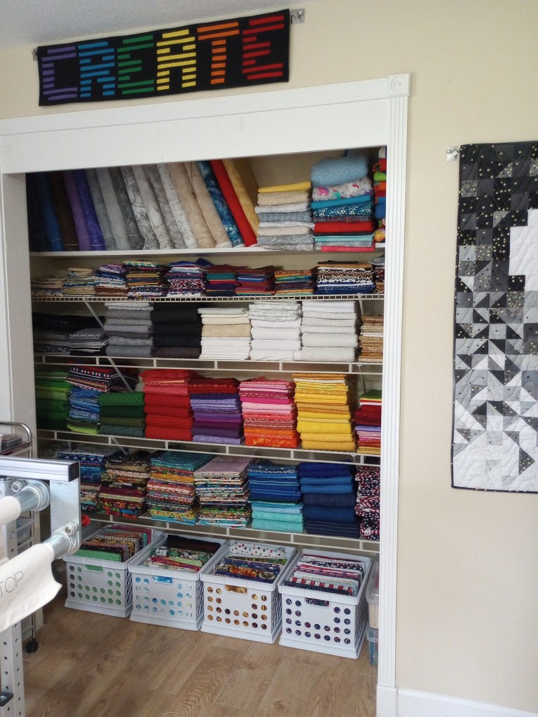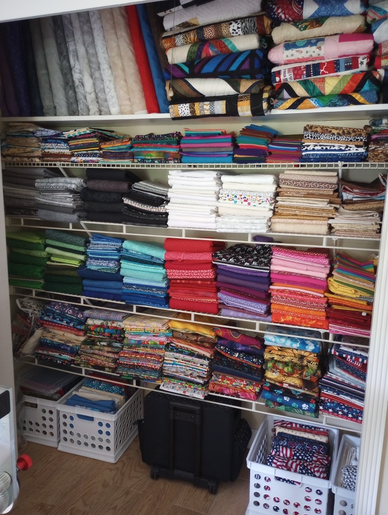 I silently chuckle when family and non-quilting friends look shocked by all this fabric. If they only knew how modest it actually is for the length of time I’ve been quilting. 😉