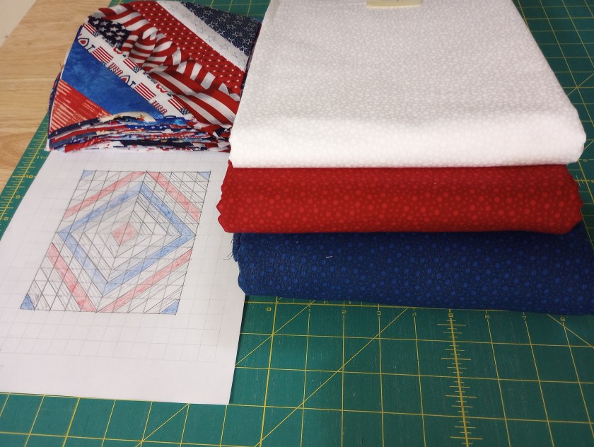 I’d forgotten I’d put a few patriotic quilts in a bin before the holidays. Looking back over my blog posts I can see the blocks were made for this one so it will probably be the next in line. Hopefully, I can finish all my L/E units with white background while using light thread.