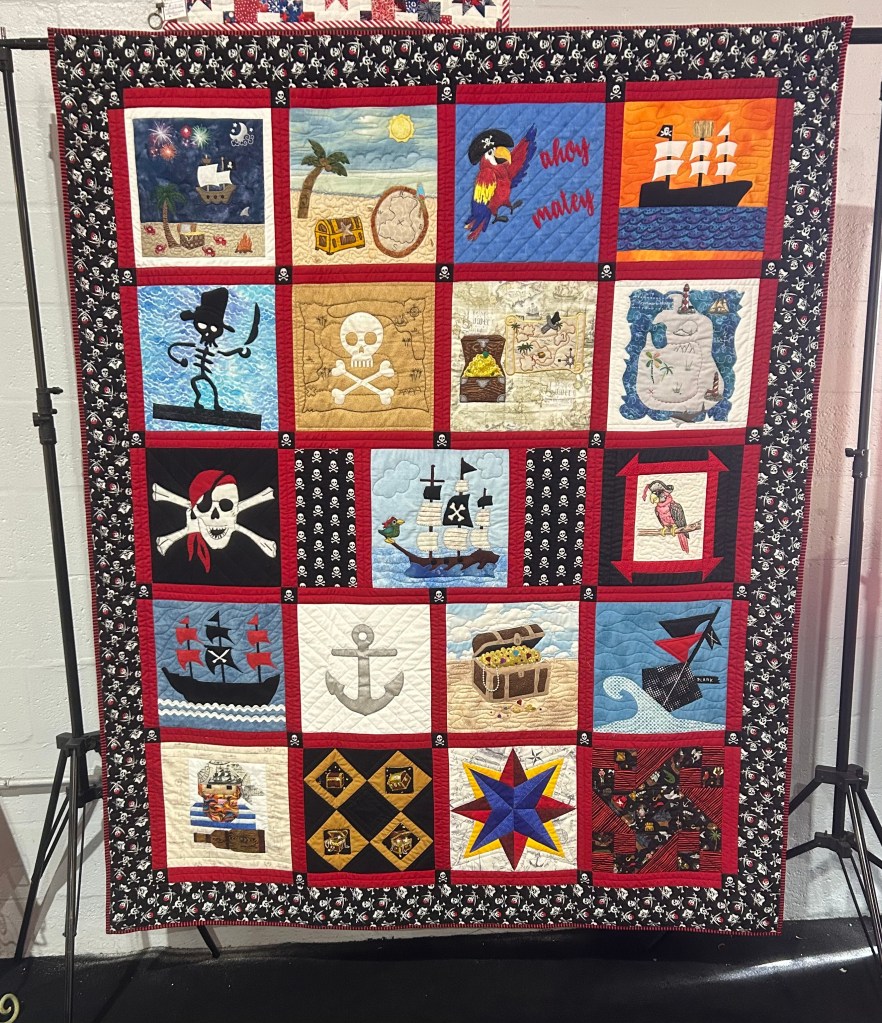 While piecing the guild’s contest blocks into the top for our South Florida Fair quilt I managed to get a lot of the block units pieced using dark thread.