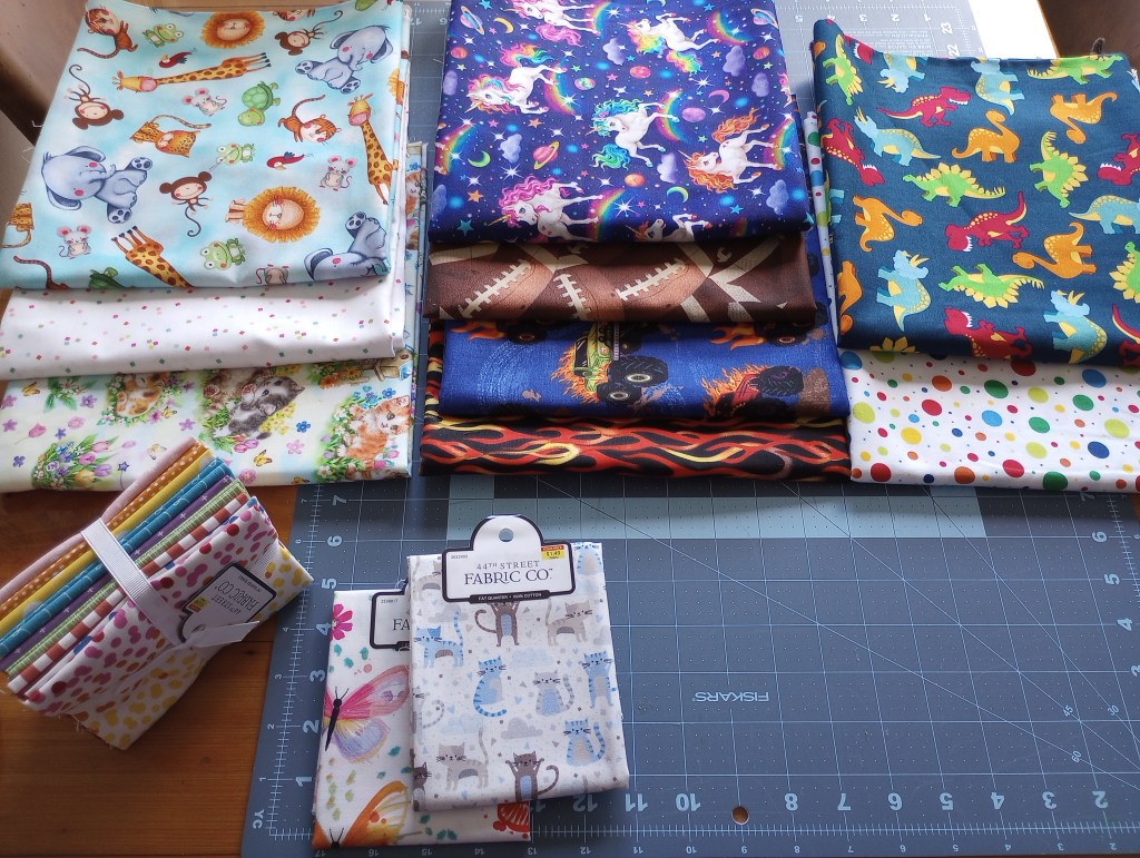 On Thursday I went to Hobby Lobby to check out the fabric sale. I’d looked online as the kids prints first so I’d have an idea of what to look for. I bought a few of the ones I’d seen online and at 12 yards for only $60 I was happy I went.