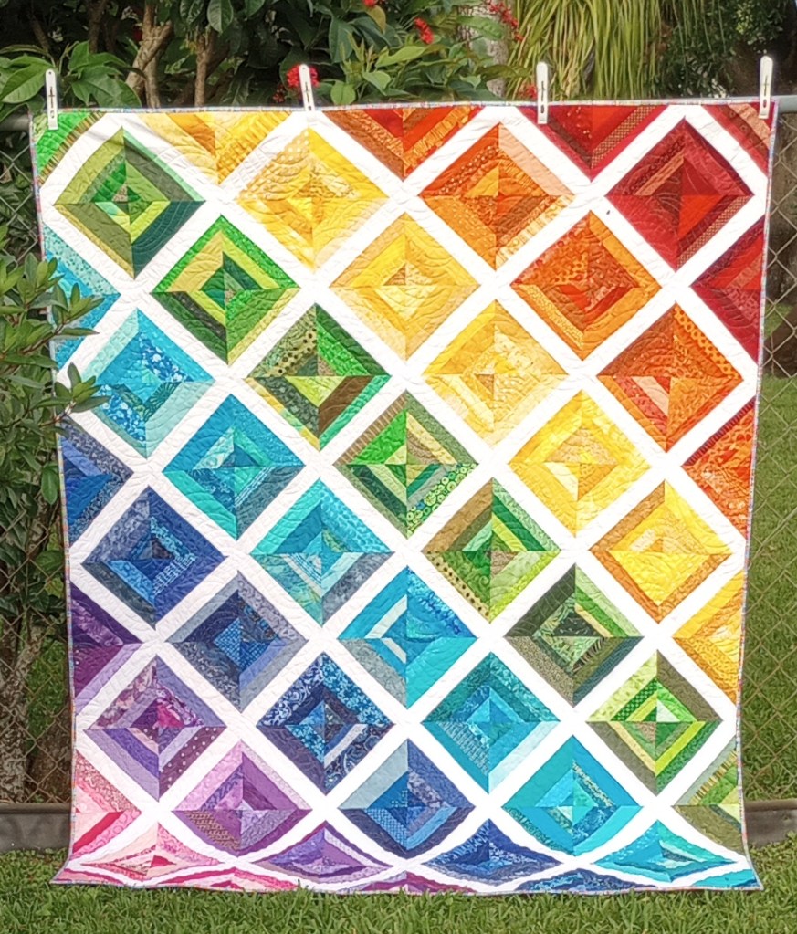 Stephanie, an Australian member of our Heartstrings online group, came up with this layout so I’m calling it “Rainbow over Australia” to give her full credit for such a great idea. She’s not just a gifted quilter but an extremely prolific one as well. Quite a feat considering she quilts everything on her domestic machine.