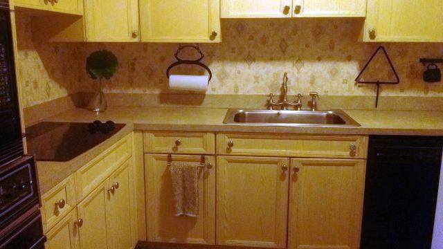 Last year we remodeled our kitchen. Choosing cabinets and countertop were agonizing decisions! Everywhere I looked were white cabinets but I wanted solid wood with a simple design stained a color that would look at home with the one thing in the house I loved the most- that barn door Sam made for me. I did get a few bells and whistles – a pull out garbage cabinet, swivel blind corner cabinet shelves, and drawers for my pots and pans. The perks of having a smaller kitchen meant being about to add some extras without breaking the bank!