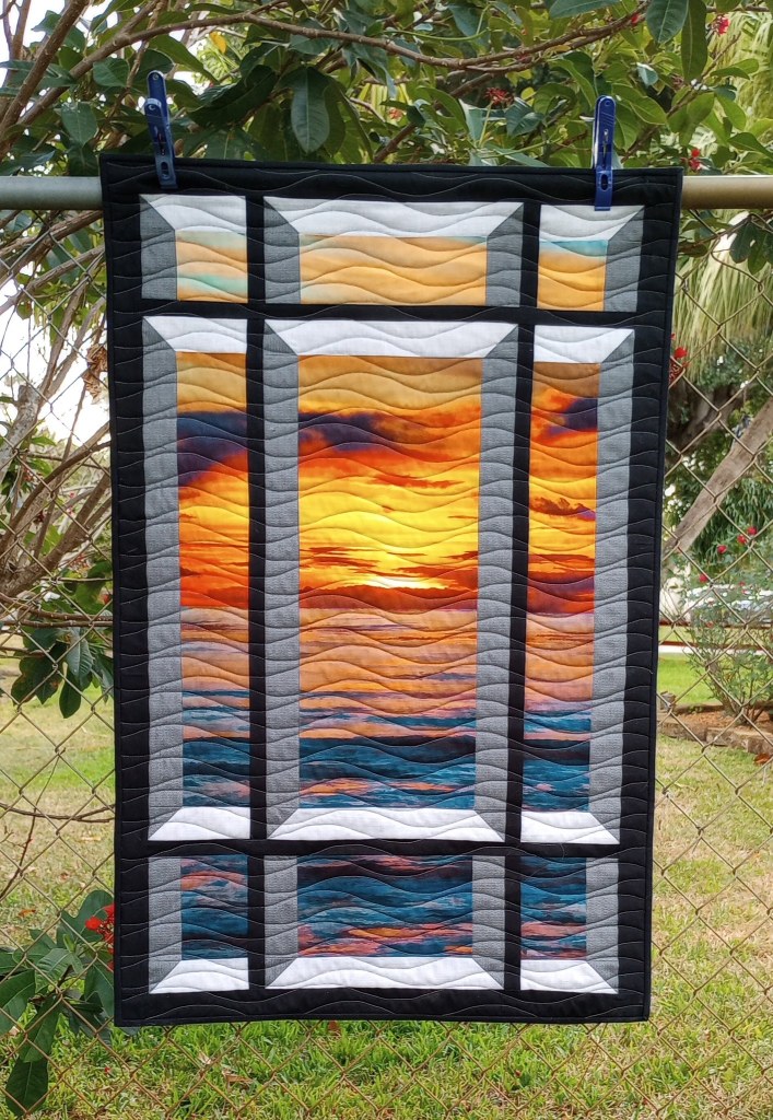 You can see the chain link fence in our side yard out of one of the windows. That’s where I take most of my quilts outside to photograph.