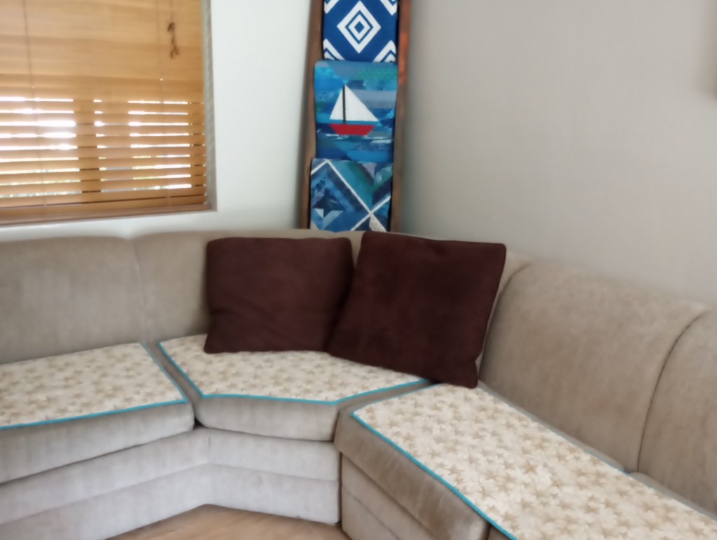 I also made some new seat covers with leaves to use on the couch from Halloween through Thanksgiving. They’re reversible so I can use for Christmas too.