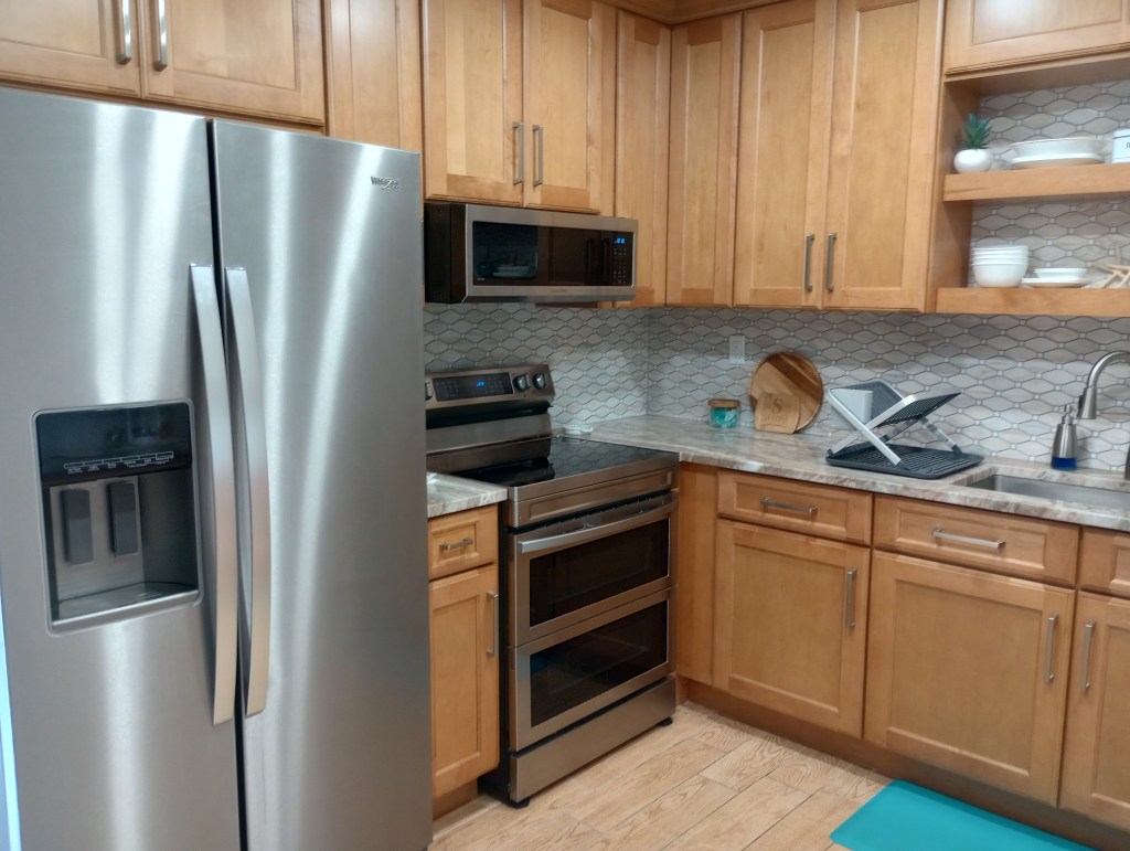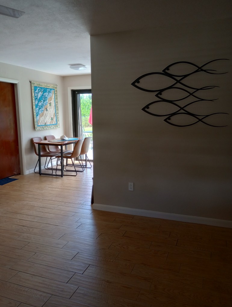 Our bedroom is that door by the dining table. The glass sliding door leads to our detached garage which is where my husband spends the majority of his day since retiring. Hopefully, our bedroom gets remodeled next spring. I’m changing a few things in there but, keeping the waterbed. LOL Yep! We still have one and we both want to keep it.