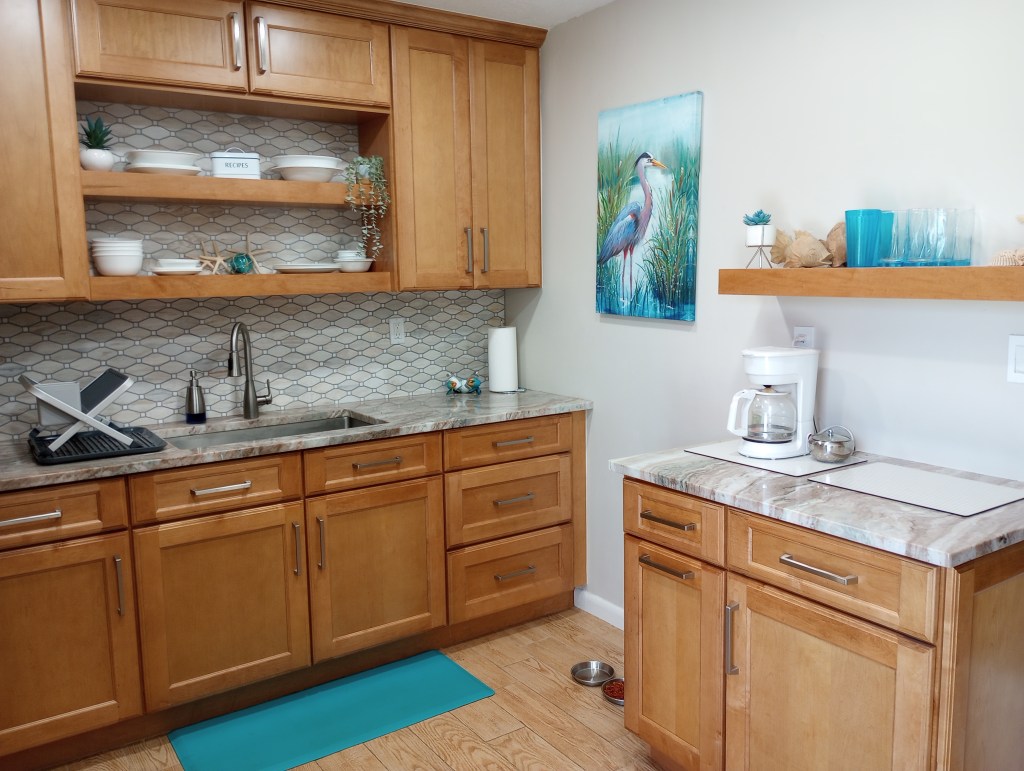 While the “beachy look” might be overkill for some people only the granite is permanent. Everything else are simply accessories and almost every one of them have a sentimental attachment.