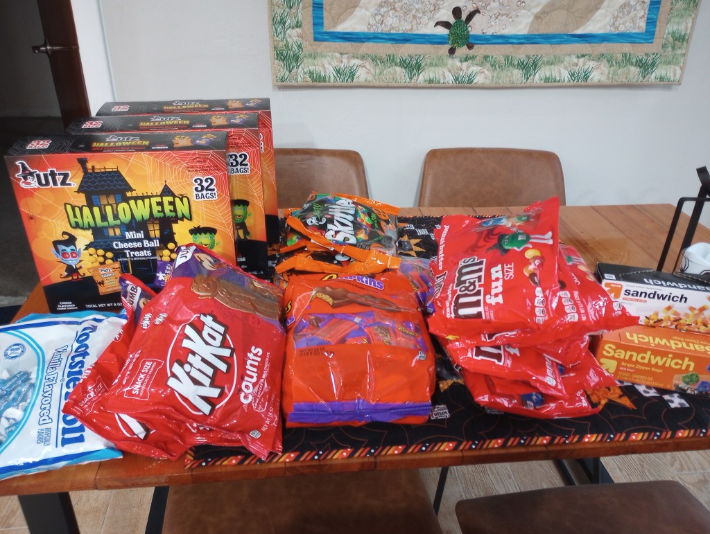 My husband thinks we have enough. Halloween is on a Friday night this year so I’m worried we might need more. (I like to give some to the parents too if they’re walking with their children. 🙂