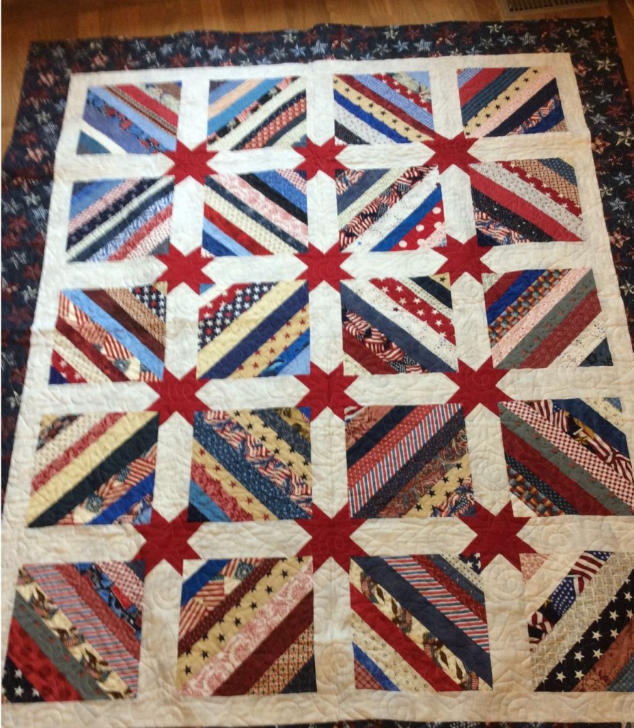 I can’t take credit for any of these beautiful and inspiring quilts. They’re screen grabs from Pinterest, gathered here to motivate us to create our own quilt this year as a heartfelt thank you to a veteran for their incredible service.