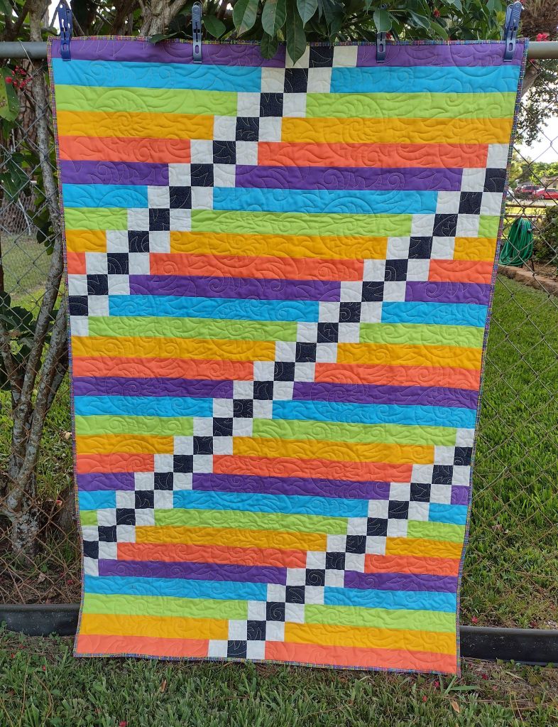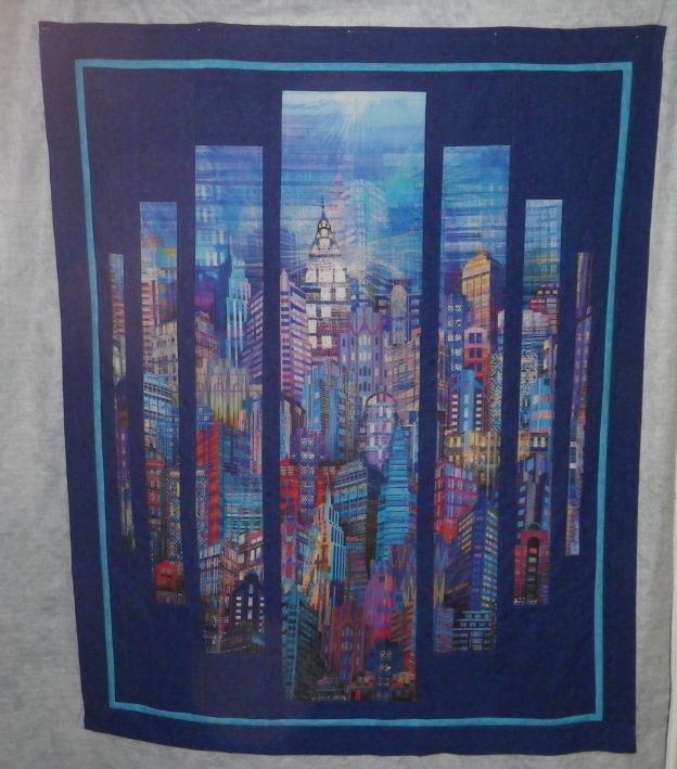 We are all New York! A tribute to healthcare workers at the beginning of the pandemic as they were cheered every evening – it wasn’t until later that we realized we really would all be New York. My friend is a professional long arm quilter and did her magic on this one for me. I love it so much it hangs permanently over my sewing machine.
