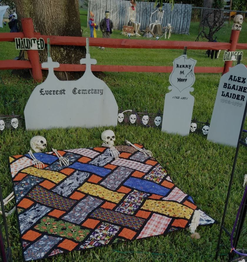 Are we done decorating yet??? (Running joke every Halloween when this quilt comes out. My husband won’t let me forget about taking this picture of my newly finished quilt.)