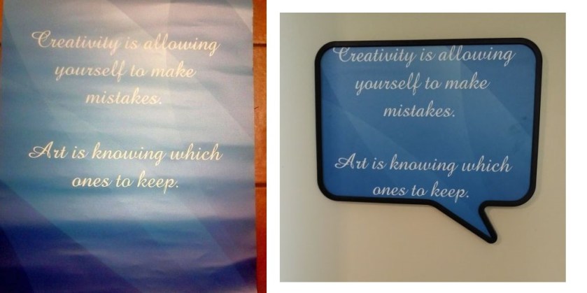 A few years ago, I had a poster printed. I framed it to hang on my sewing room door so I see it every time I walk in the room. It’s a constant reminder to enjoy being creative and accept that mistakes are going to happen. If you want to be a quilter, you’re always striving to get better but you learn pretty quickly that you have to leave perfectionism at the door.