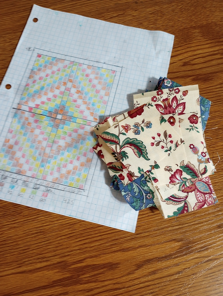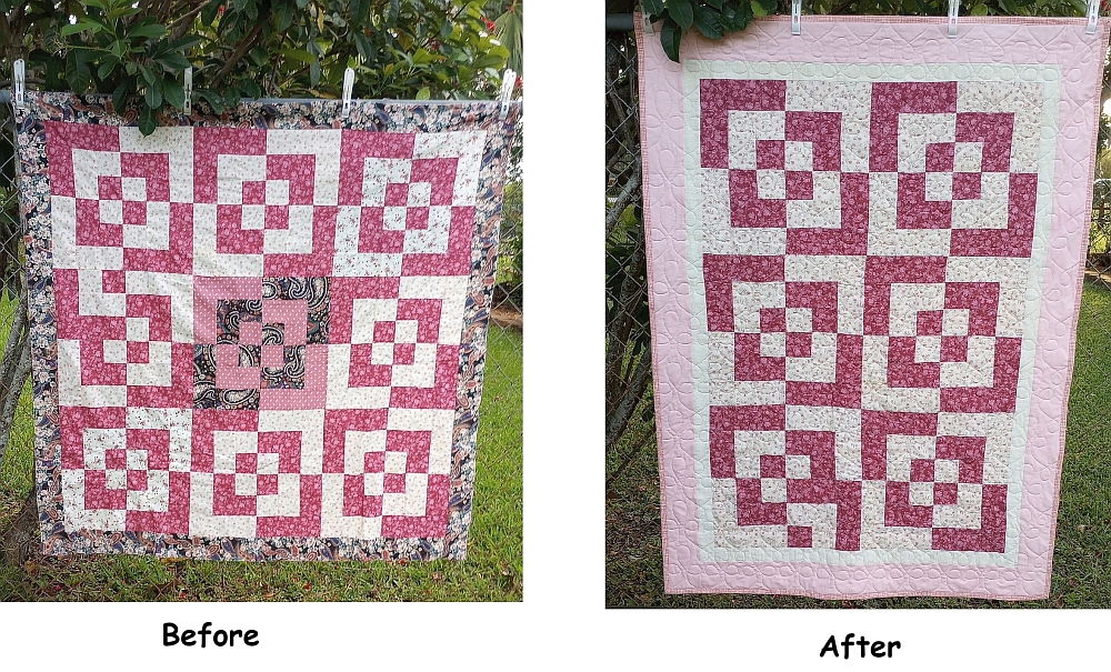 Two blocks had red and blue print in the neutral rather than pink. The black paisley in the center block was different that the paisley in the border.