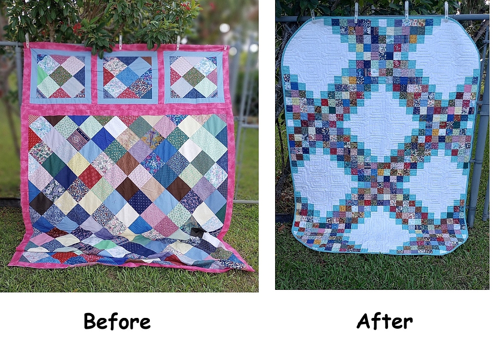 My goal was to turn these unloved tops into useful quilts for people in my community.