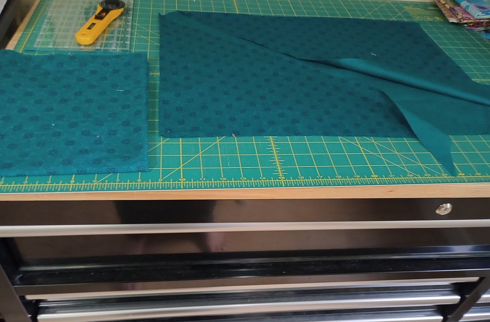 These are the beginnings of the next string project. A year or so ago someone gave me the teal fabric on the right. If you look closely, you’ll see she had cut it diagonally to make a bias binding. She was going to toss the leftovers away when I spoke up and said, “if you’re going to throw it out, can I have it?”.